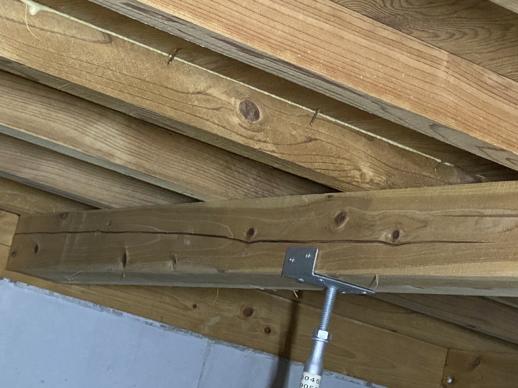 現地調査した際、床組の部材のクラック(割れ)を数箇所発見しご報告