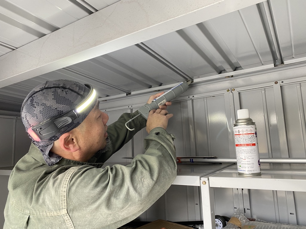 ヤモリが好む害虫を死滅させる薬剤を倉庫内外に散布しました。