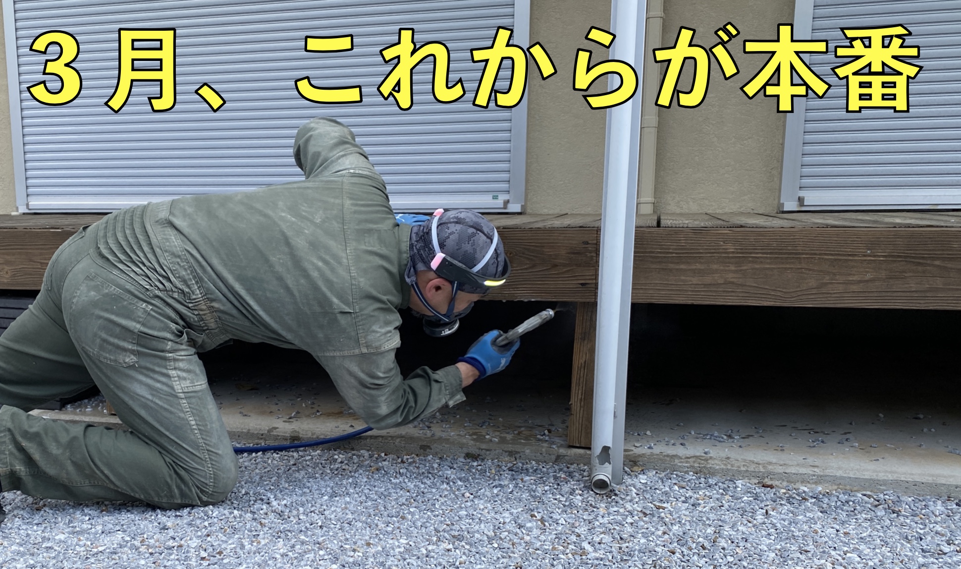 シロアリ防除施工+ヤモリ糞害対策となりました